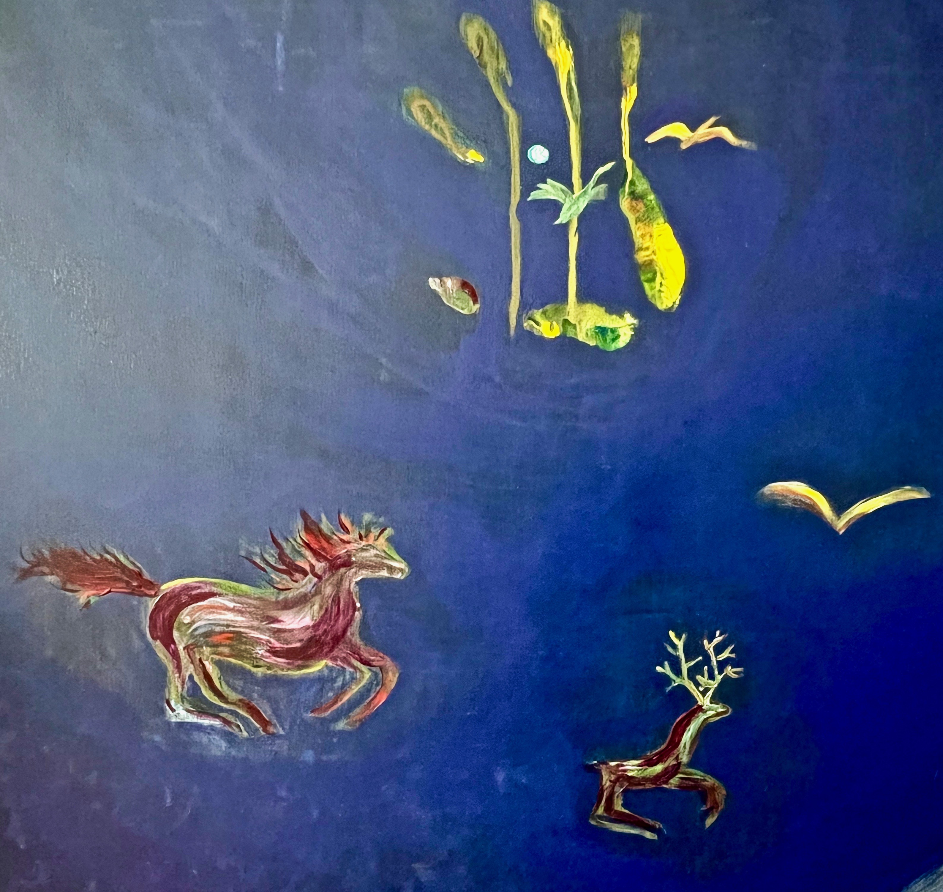 SIMULTANEITY When you touch me—I am breath rather than a woman breathing. One thousand wings, a single beat, split sky with summer rain. Breath rather than breathing fills the empty glass. Split sky with summer rain reveals horses carved in stone. Fill the empty glass with wine of roses, lilac, heather; reveal horses carved in stone but not hands that formed their symmetry. With wine of roses, lilac, heather, toast grass that fractures concrete blocks but not hands that formed the symmetry of streets concealing streams. Toast grass that fractures concrete blocks beside the woman reaching toward you; on streets concealing streams she begs for food, shelter beyond grasp. There is a woman reaching toward you; her face is old, possessions few, as she begs for food, shelter beyond grasp, and I see you, I see myself within her mask. Her face is old, possessions few; she came to laugh—she came to love, and I see you, I see myself within her mask reflecting how the earth breathes. We came to laugh—we came to love; one thousand wings, a single beat reflecting how the earth breathes when you touch me.